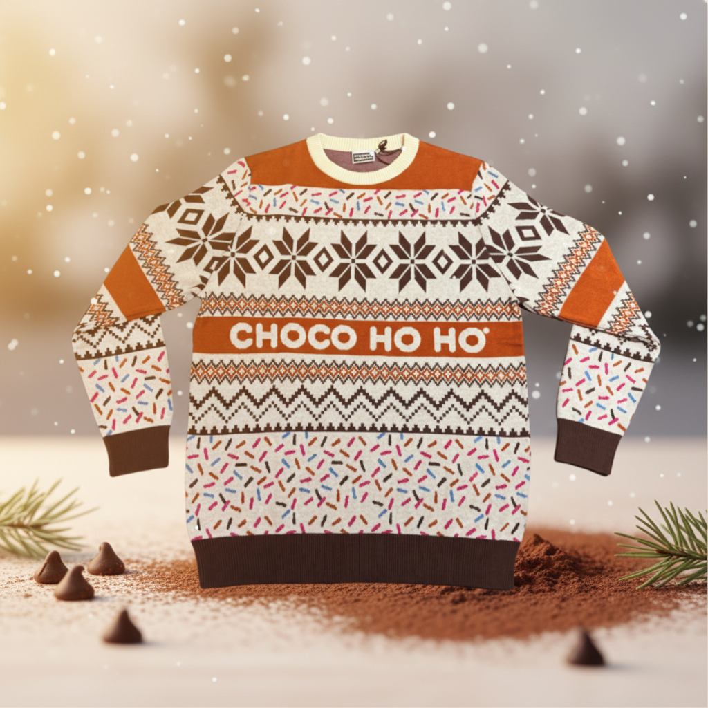 Ganz neu im Sortiment: Unser Ugly Christmas Sweater! Kuscheliger Winterstrick trifft schokoladiges CHOCOVERSUM-Design – perfekt für Advent, Weihnachtsmärkte und gemütliche Wintermomente.