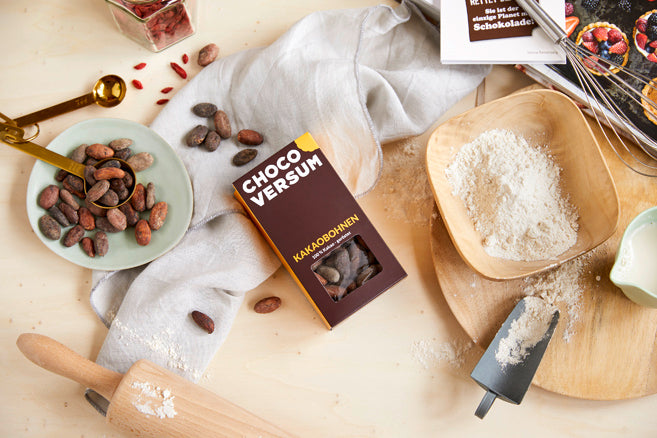 Die Stars unserer Schokotour, auf einer Seite versammelt! Die Kakaonibs, die Kakaobohnen und - vor allem - das Walzgut wecken in unseren Gästen süße Erinnerungen. Jetzt kann man sich jede*r ein Stück CHOCOVERSUM auch nach Hause holen!
